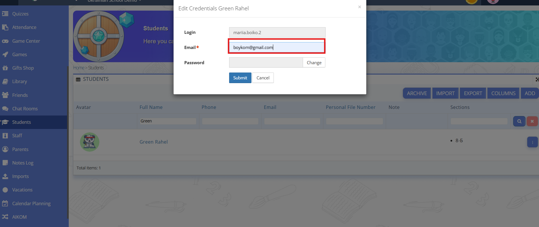 Verify that the updated email address is displayed for the student and inform them that they can now log in using the new email.