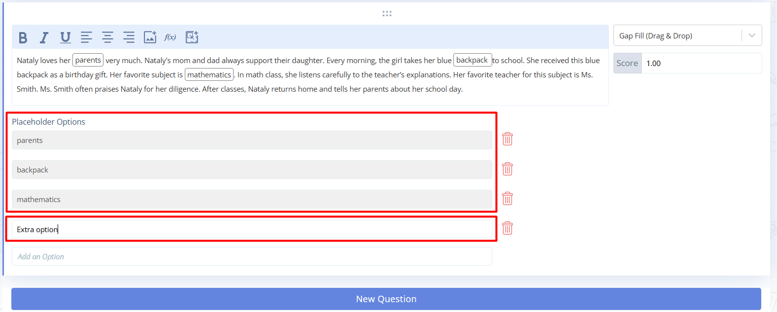 Question type “Gap Fill ( Drag&Drop)”¶