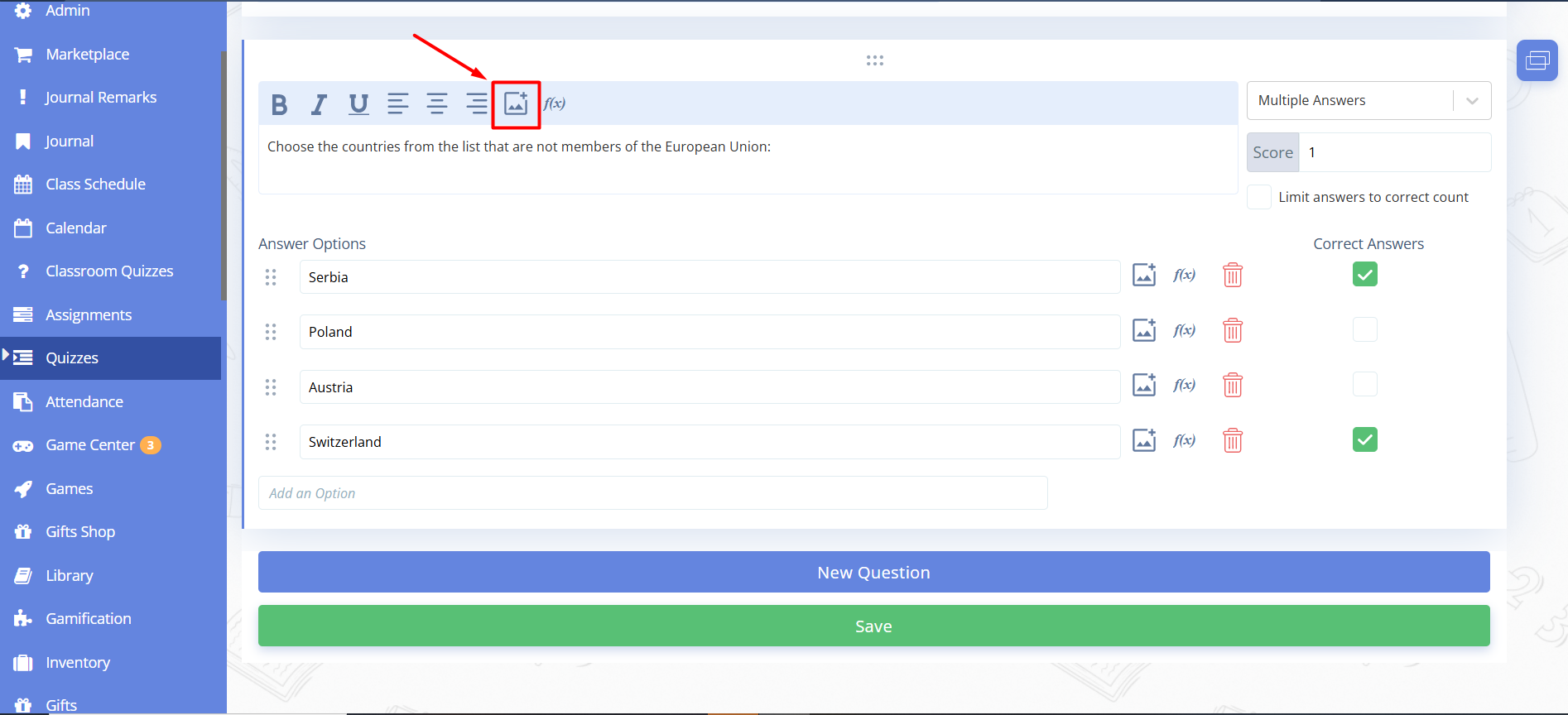 Fig. 3. Adding an image to a question