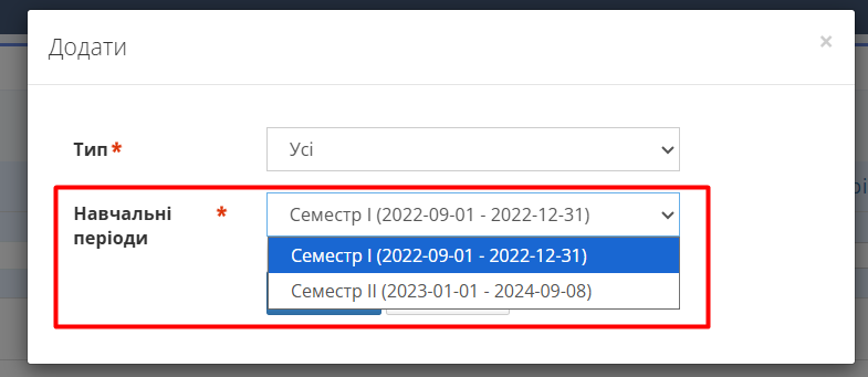 Рис. 6. Фільтр навчальних періодів для синхронізації з AIKOM* - Натисніть "Зберегти".