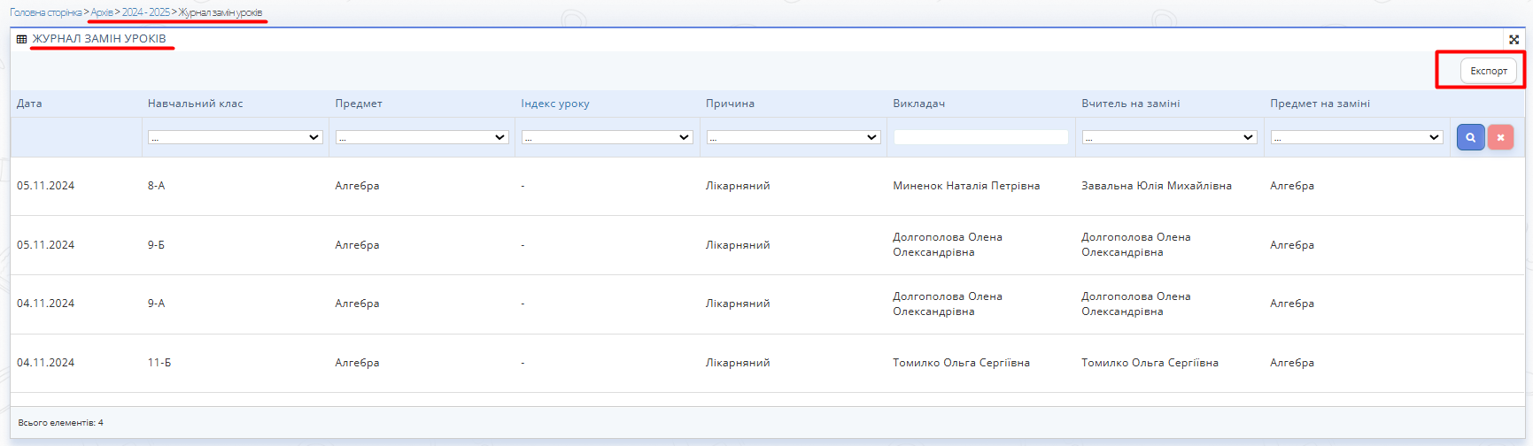 Рис. 3 — Приклад архівного журналу замін вчителів