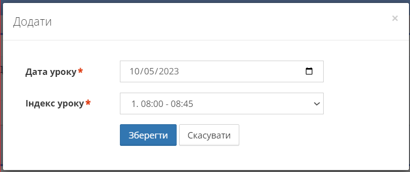 Введіть дату та час проведення уроку. Вони мають точно відповідати розкладу навчального закладу.