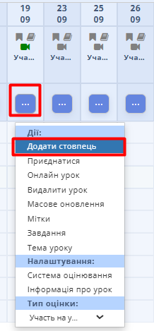 ⚠️ Перед видаленням стовпця видаліть усі оцінки та примітки про відсутність у ньому. Інакше видалення буде недоступним.