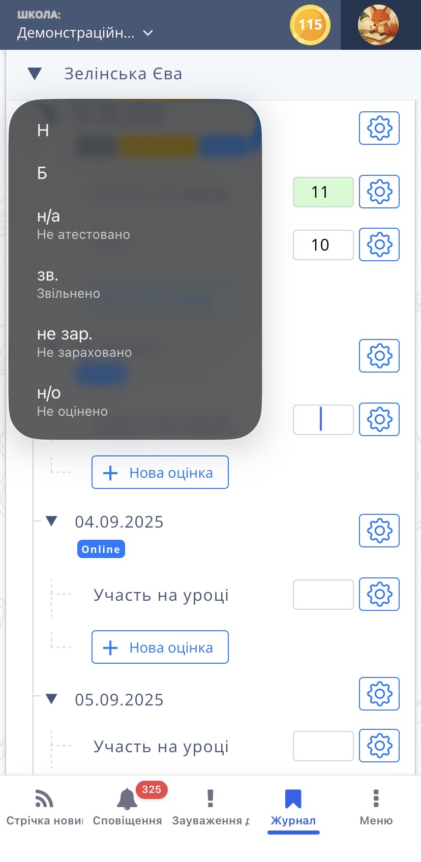 Виставлення оцінювання на уроці у мобільному журналі¶