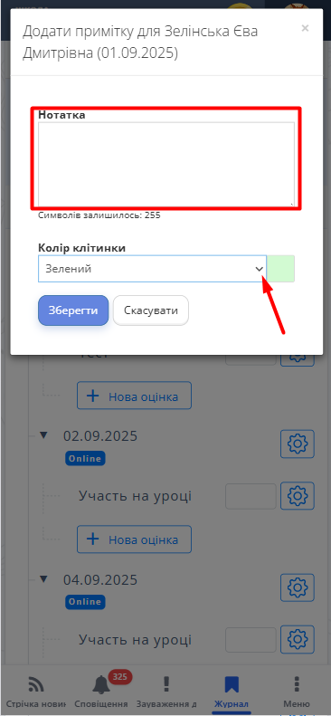 Додавання комантаря до оцінки учня у мобільному журналі¶