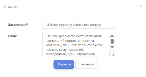Рис. 6 — Редагування шаблону журналу - У вікні Редагувати: Шаблон журналу виберіть потрібний варіант і натисніть Зберегти.