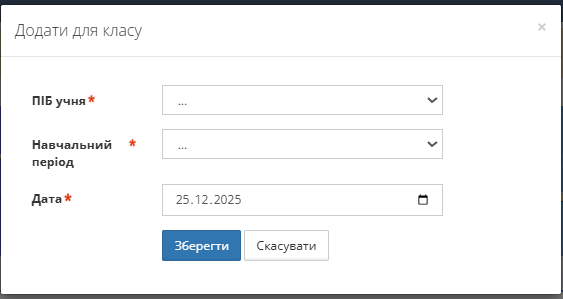 Розділ «Реєстрація вступного інструктажу» використовується для фіксації вступних інструктажів для учнів. Інструктаж можна створити як для всього класу, так і для окремого учня.