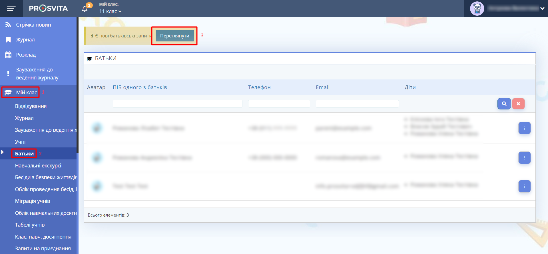 - Знайдіть повідомлення "Є нові батьківські запити".