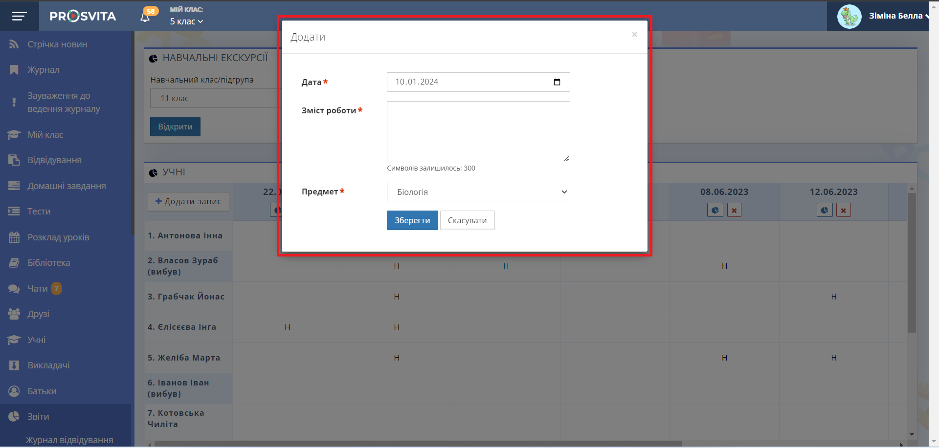 - Виберіть потрібний клас у випадаючому списку на сторінці "Навчальні екскурсії".