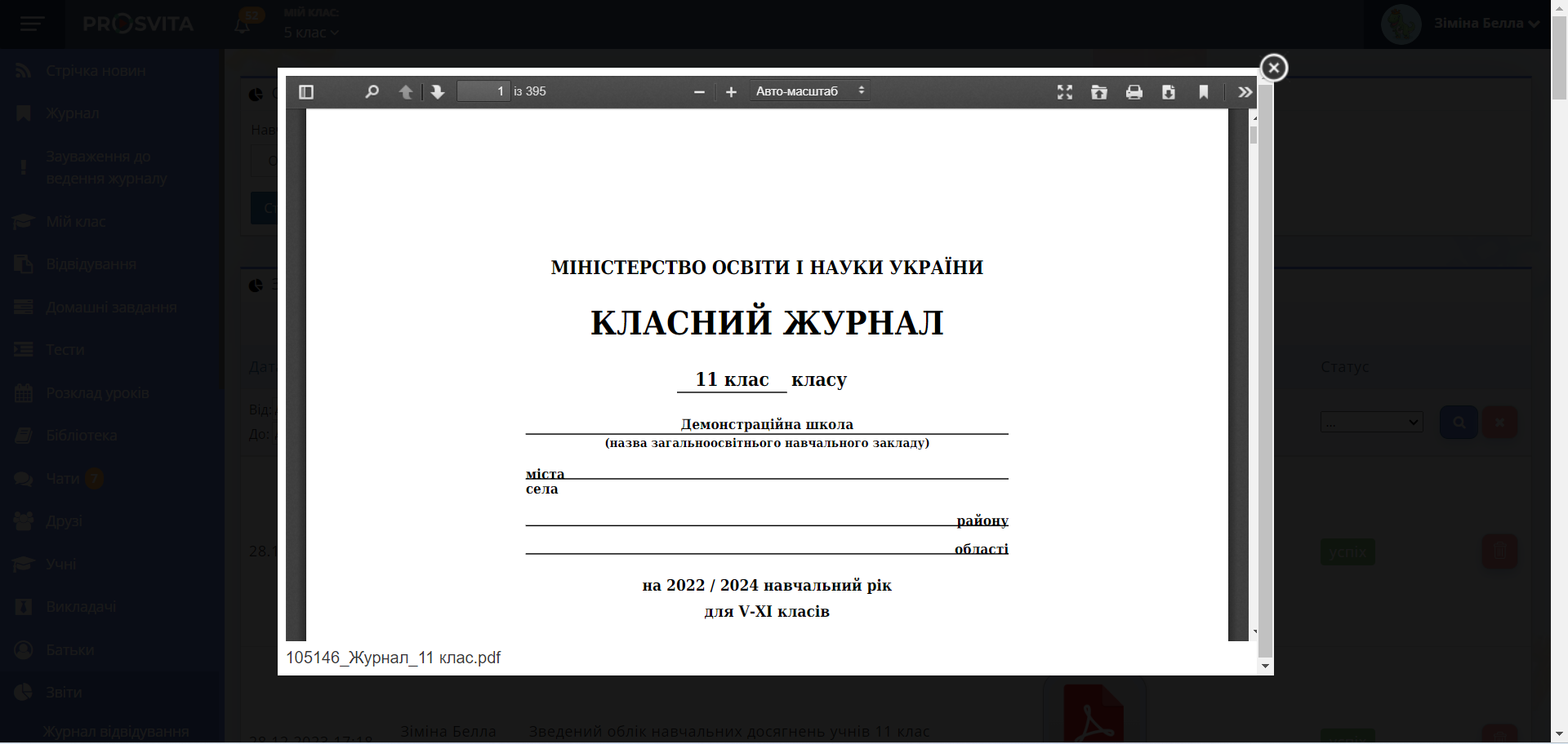 - Через орієнтовно 30 сек буде сформовано файл журналу у форматі .pdf.