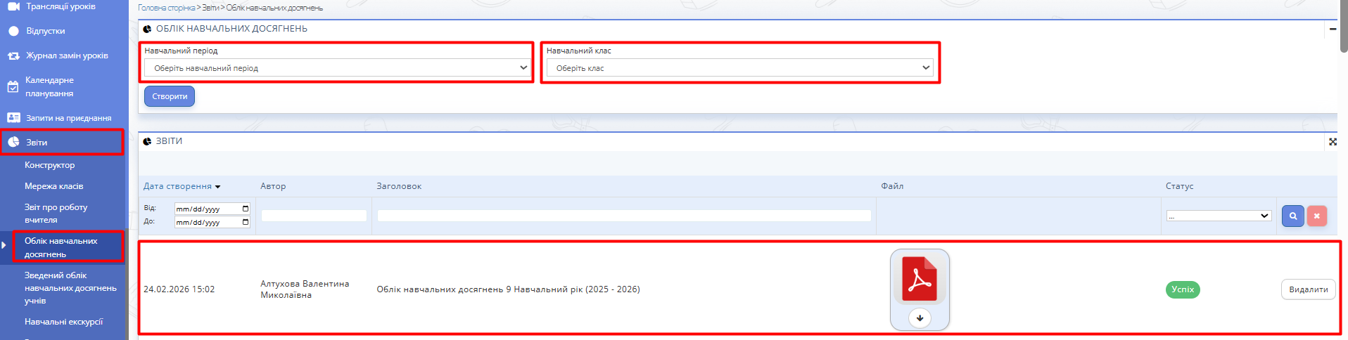 Звіт "Облік навчальних досягнень"