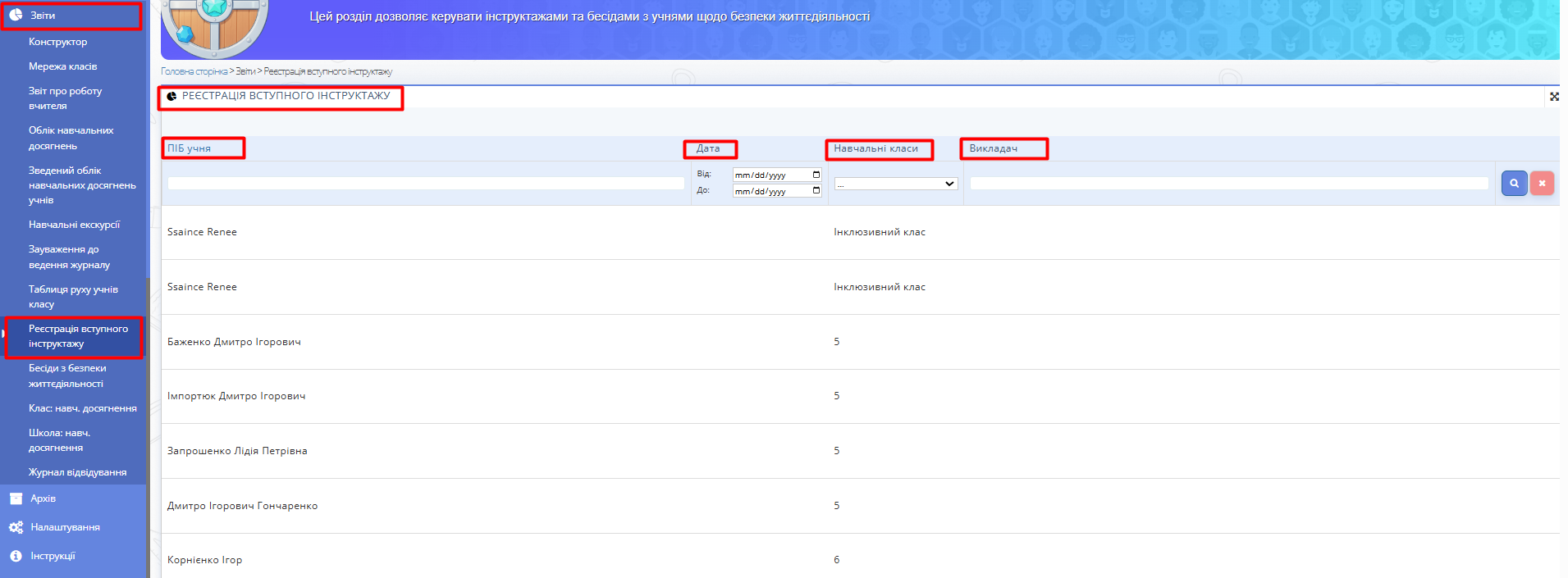 1. Відкрийте сторінку "Звіти" -> "Реєстрація вступного інструктажу".