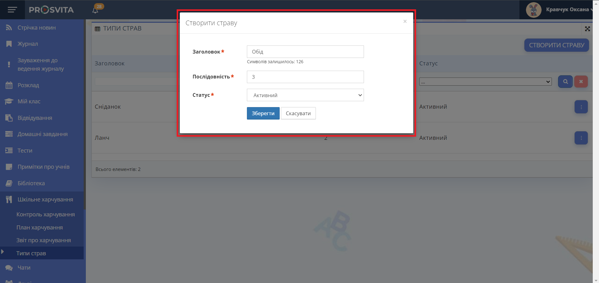 Перейдіть у розділ "Шкільне харчування" -> "Керування типами".