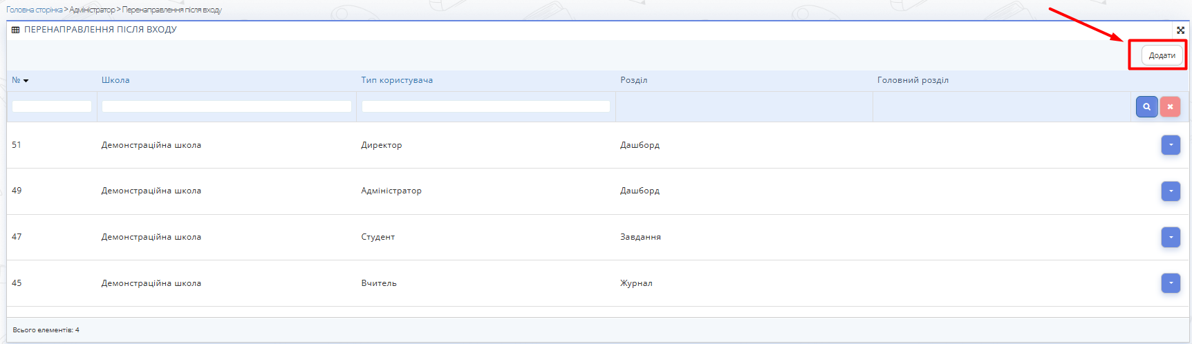 Інструкція описує, як налаштувати перенаправлення користувачів після входу в систему. Вона дозволяє визначити, яку сторінку бачитимуть різні типи користувачів після авторизації, з урахуванням їх ролей на платформі.