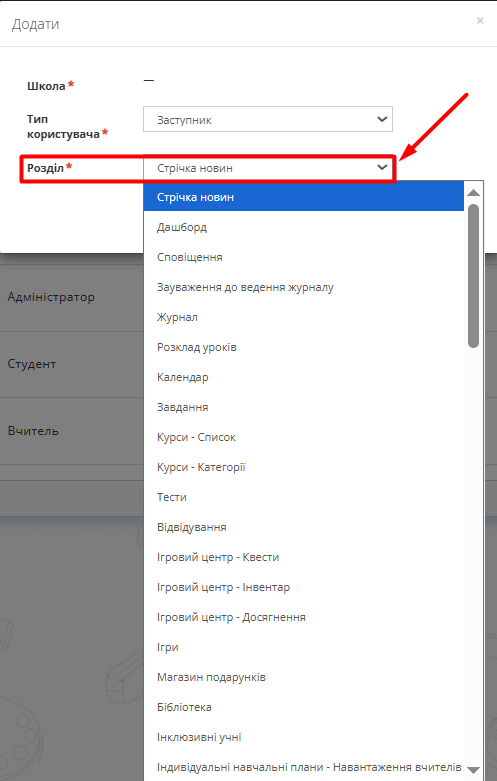 - Для Вчителів налаштувати розділ "Журнал";