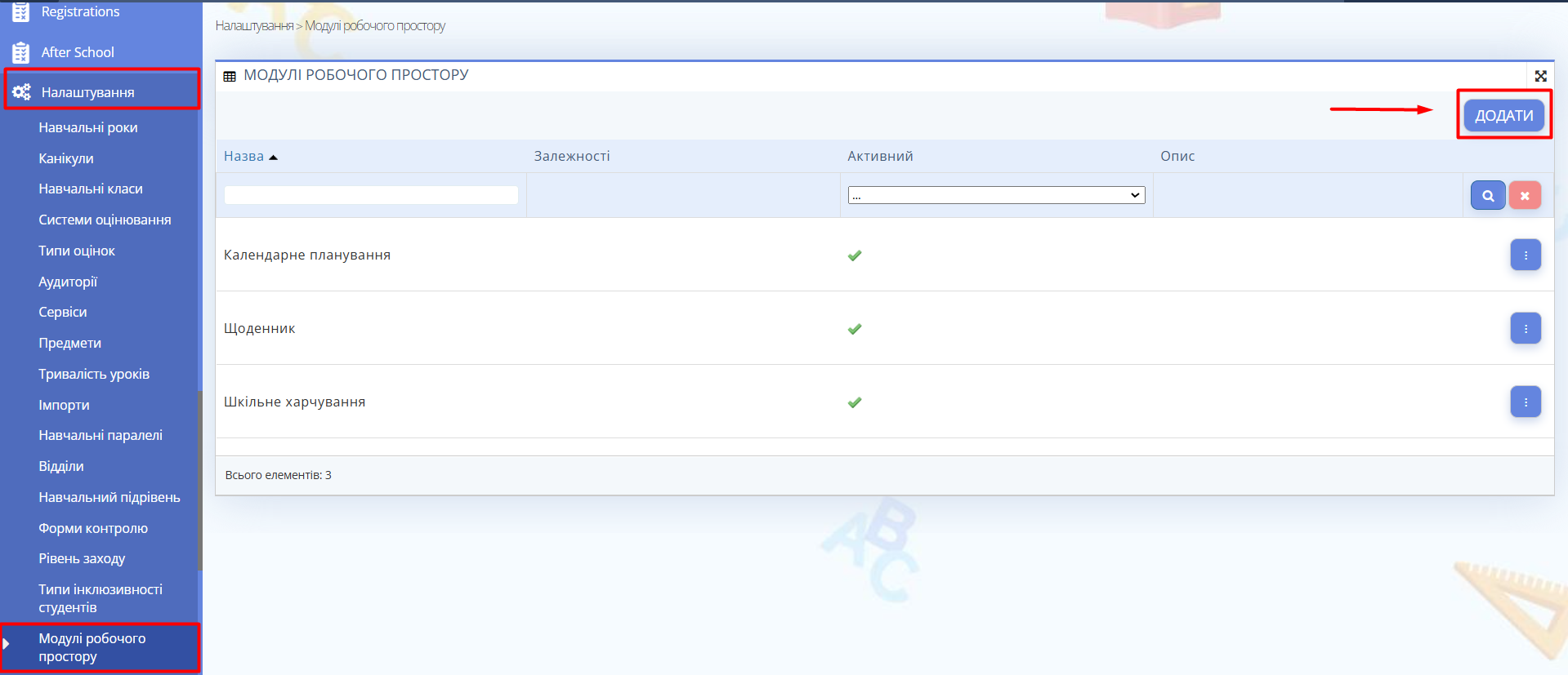 - Оберіть "Модулі робочого простору".