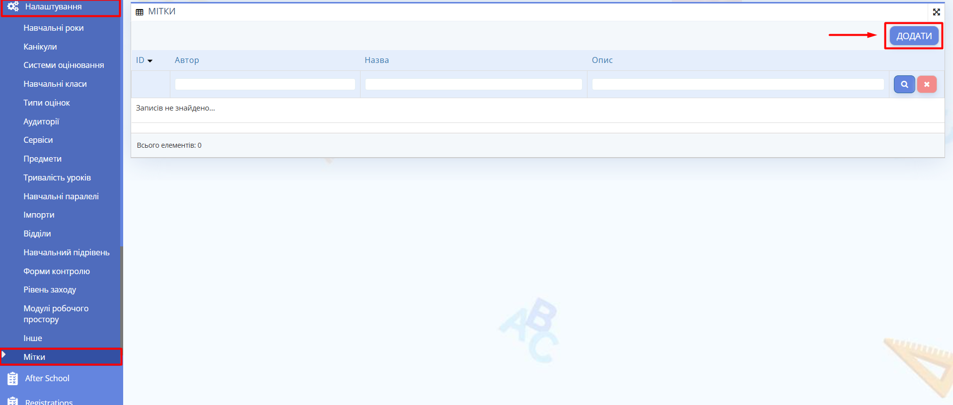 Після активації модуля у розділі "Налаштування" з'явиться пункт "Мітки".