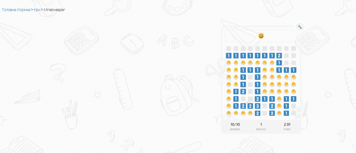 Minesweeper — класична логічна гра-головоломка для браузера, де мета — відкрити всі клітинки поля, не натрапивши на міни. Гра тренує уважність, логіку та стратегічне мислення.