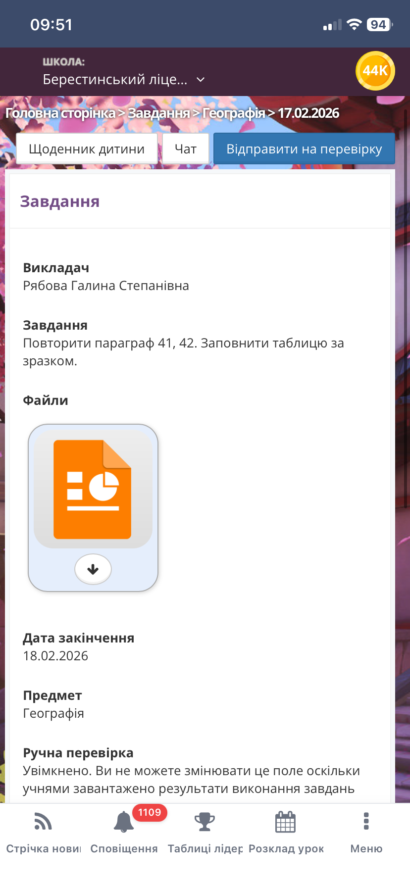 Рис. 2 — Картка уроку у мобільному щоденнику