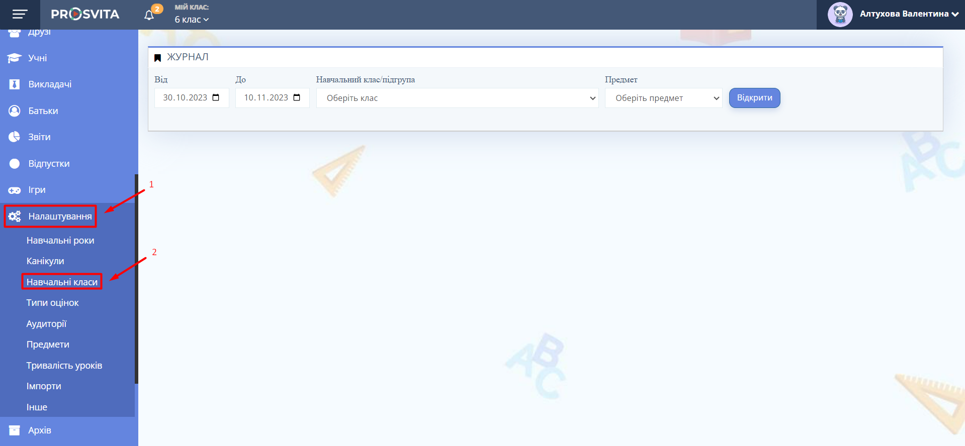 Відкрийте розділ Налаштування → Навчальні класи.