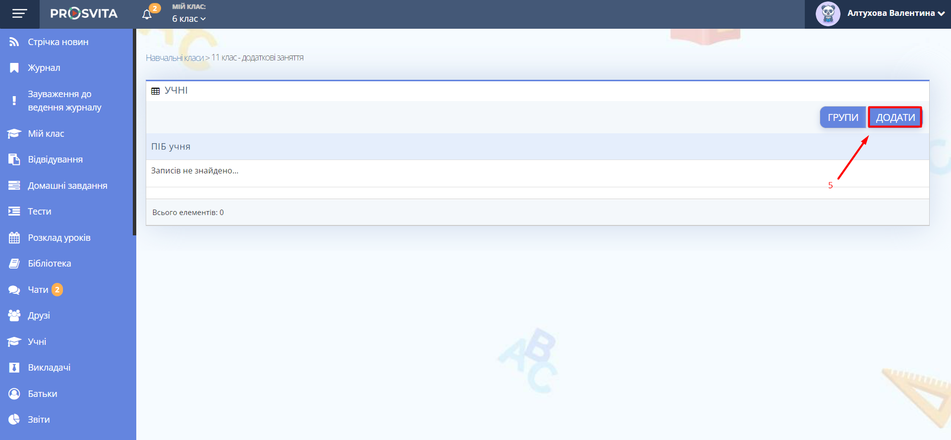 Рис. 2 — Кнопка "Учні" -