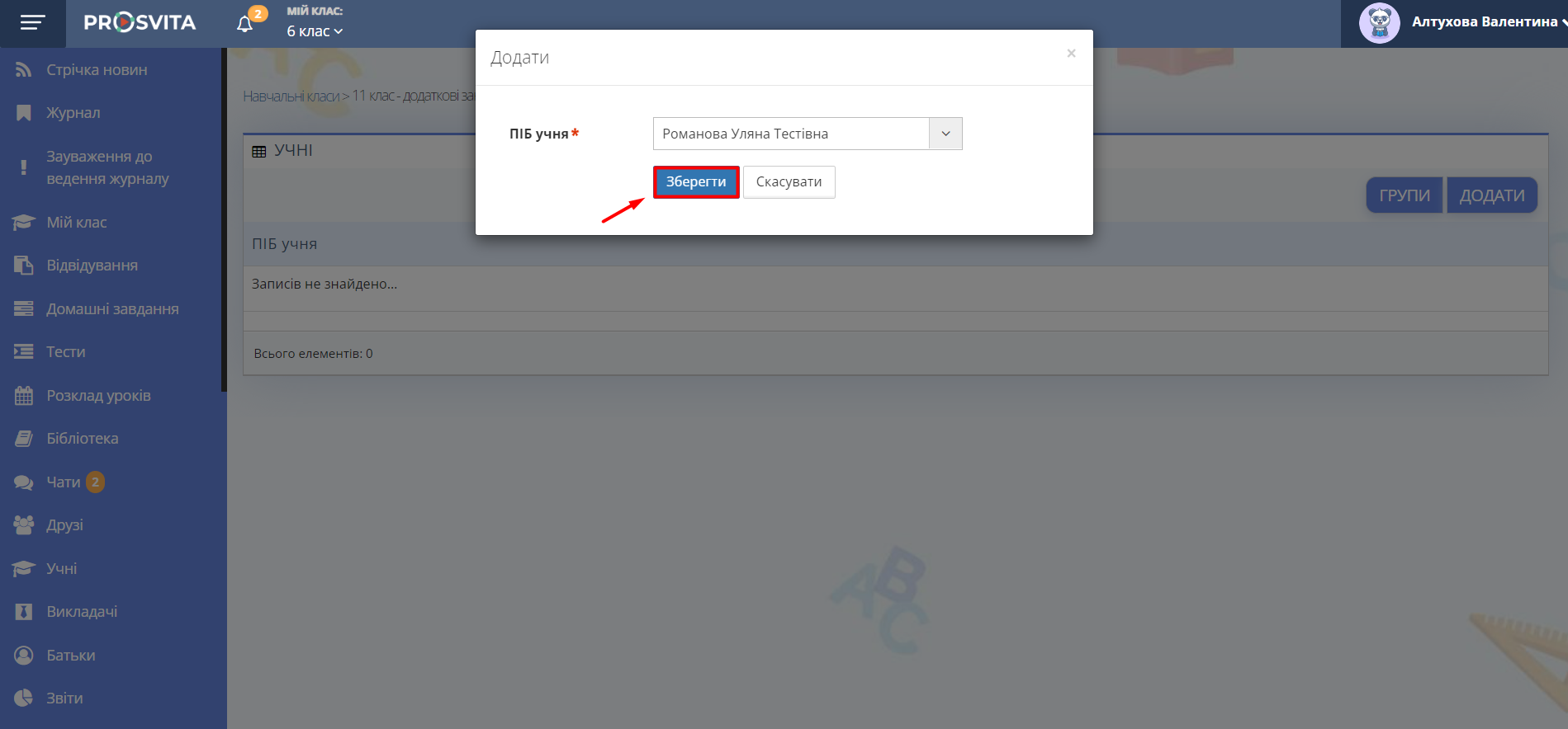 Почніть вводити ПІБ учня та оберіть потрібну дитину зі списку.