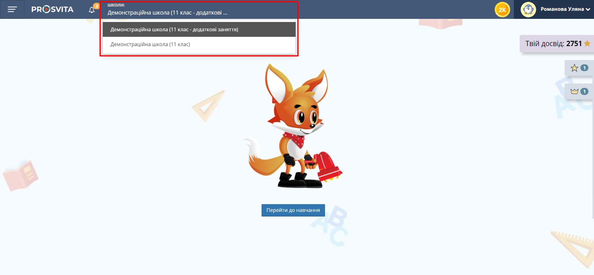 Учня додано до ще одного класу. В його профілі з’явилася можливість перемикатися між класами.