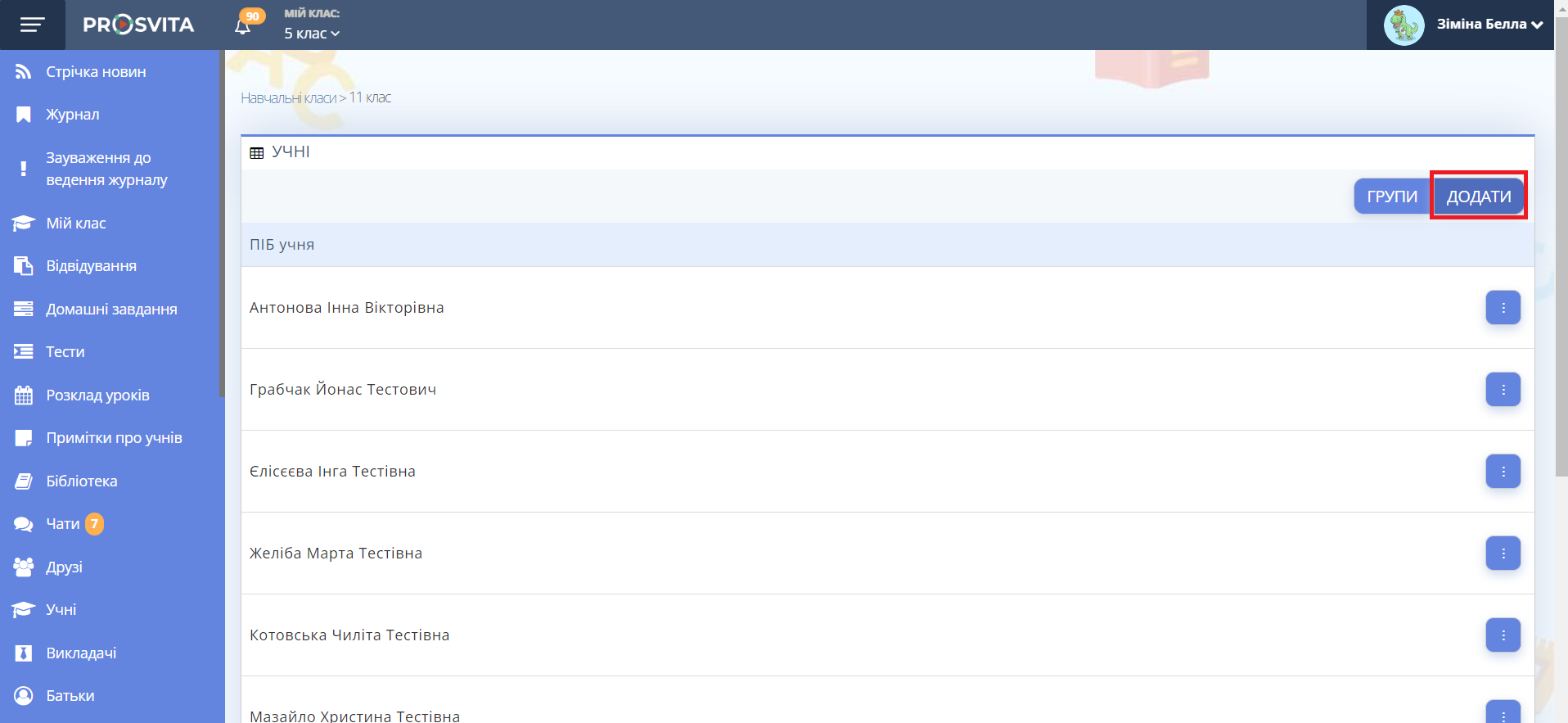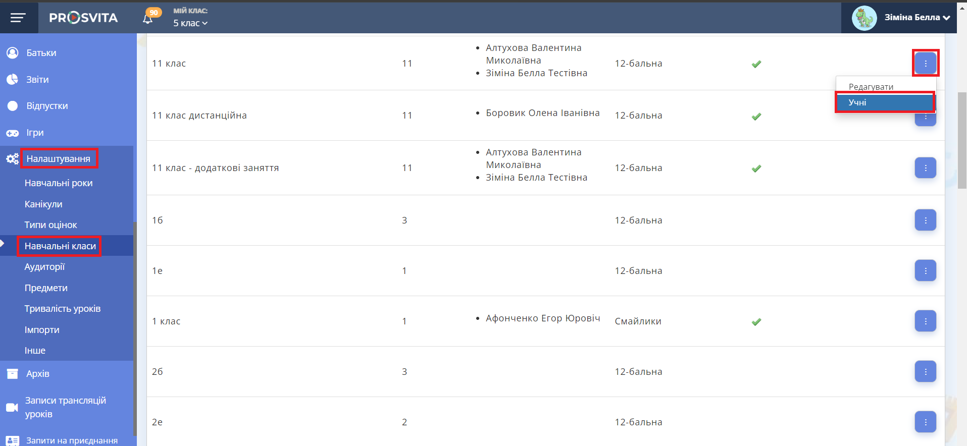 Перейдіть у розділ Налаштування → Навчальні класи.