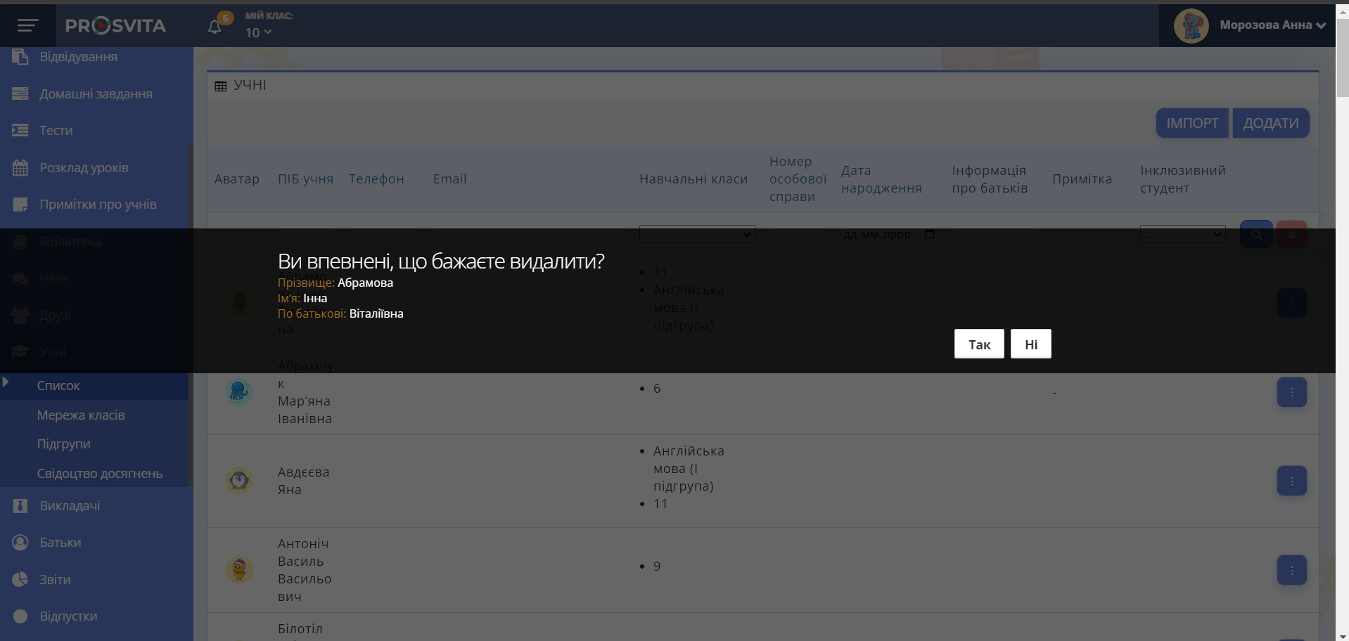 ⚠️ Після видалення учня вся інформація про нього зникне з журналу класу та підгруп.